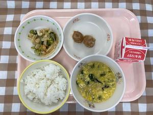 【小学校】ご飯 牛乳 コーンと卵の中華スープ シュウマイ えびとブロッコリーのオイスターソース炒め
