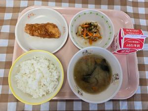 【小学校】ご飯 牛乳 吉川汁 鶏肉のから揚げ こんにゃくサラダ