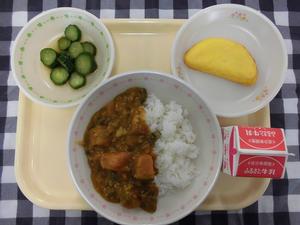 【小学校】牛乳 ご飯 夏野菜カレー オムレツ コロコロきゅうり