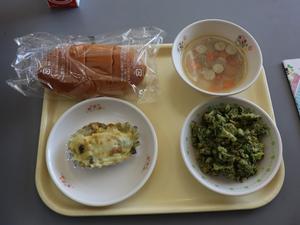 給食には、もちろん尾島琥太郎くんの「吉川ねぎと鶏肉のカレーグラタン」が。